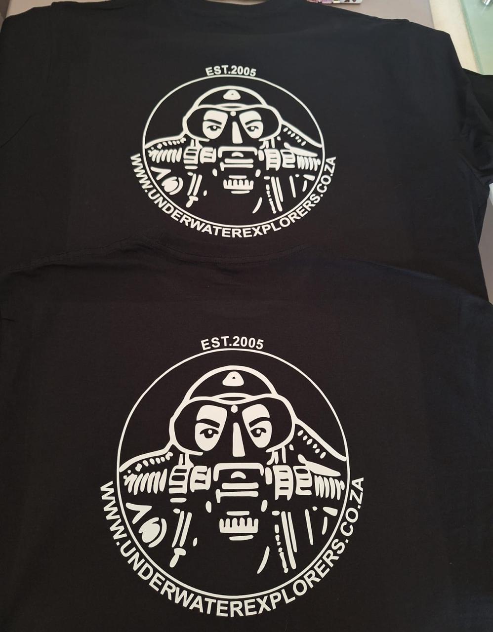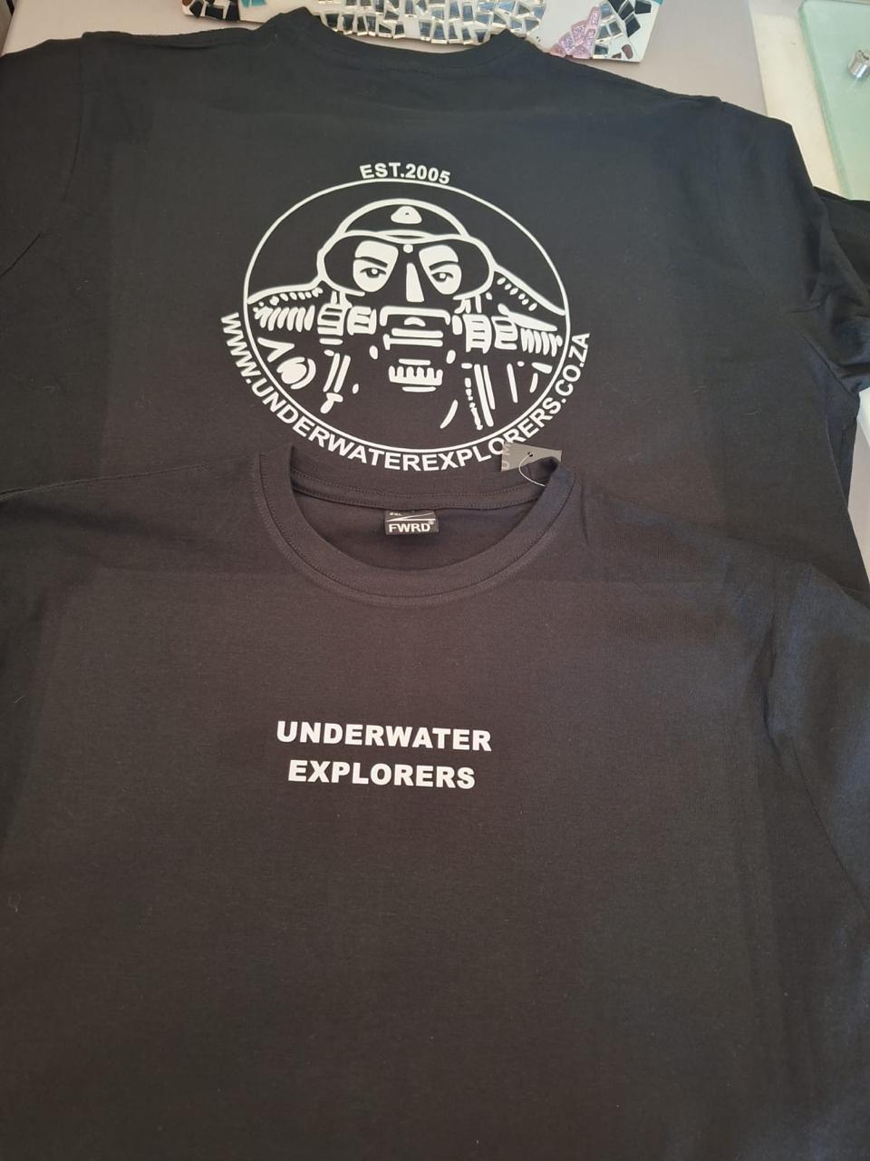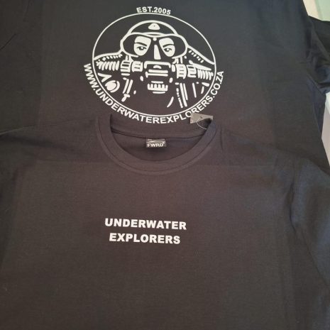 Made from soft, high-quality cotton, the front features a clean, bold UNDERWATER EXPLORERS print, while the back displays the iconic Underwater Explorers dive emblem